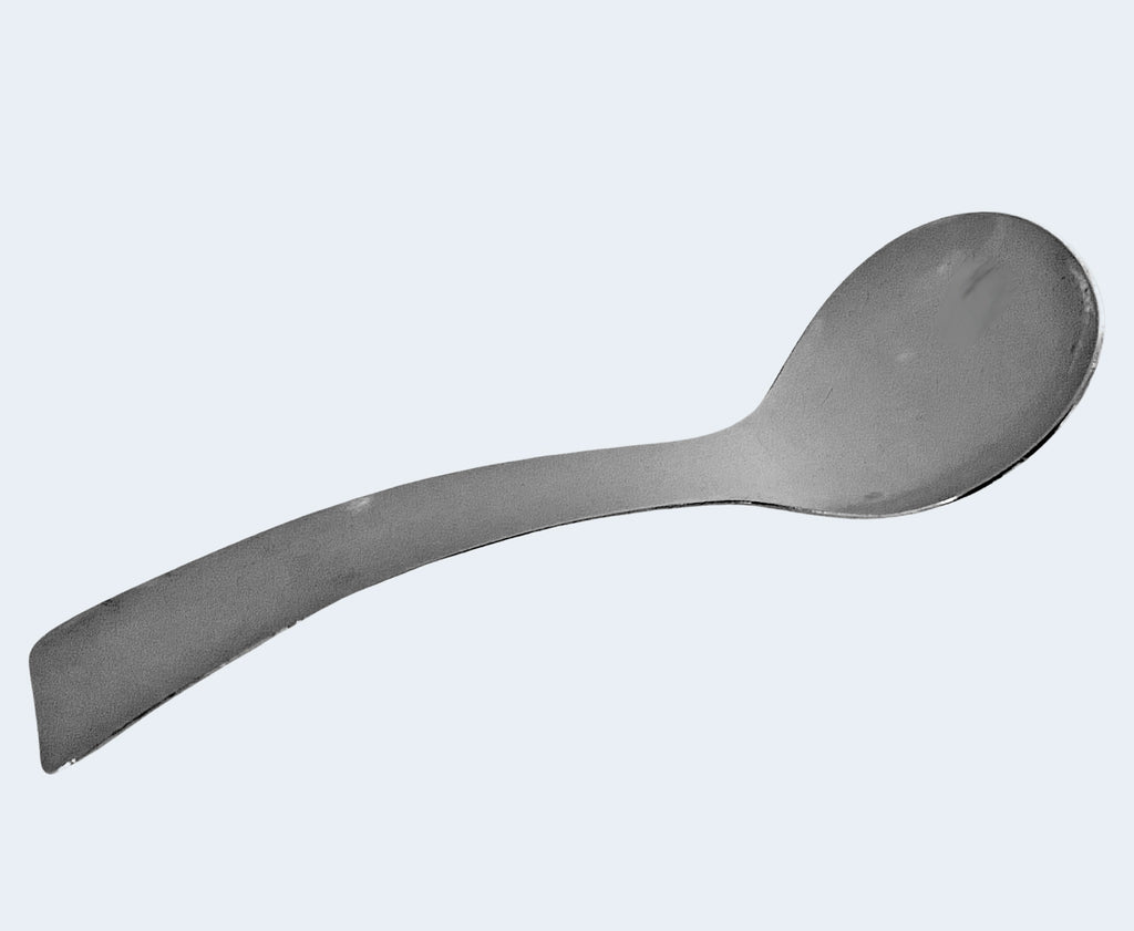 Allan Adler sterling silver modern flat top curved handle sugar, preserve or caddy spoon. Handmade. Marked: ALLAN ADLER STERLING. Measures: 5" in length. Weight: 32.13 gm. Very good pre-owned condition